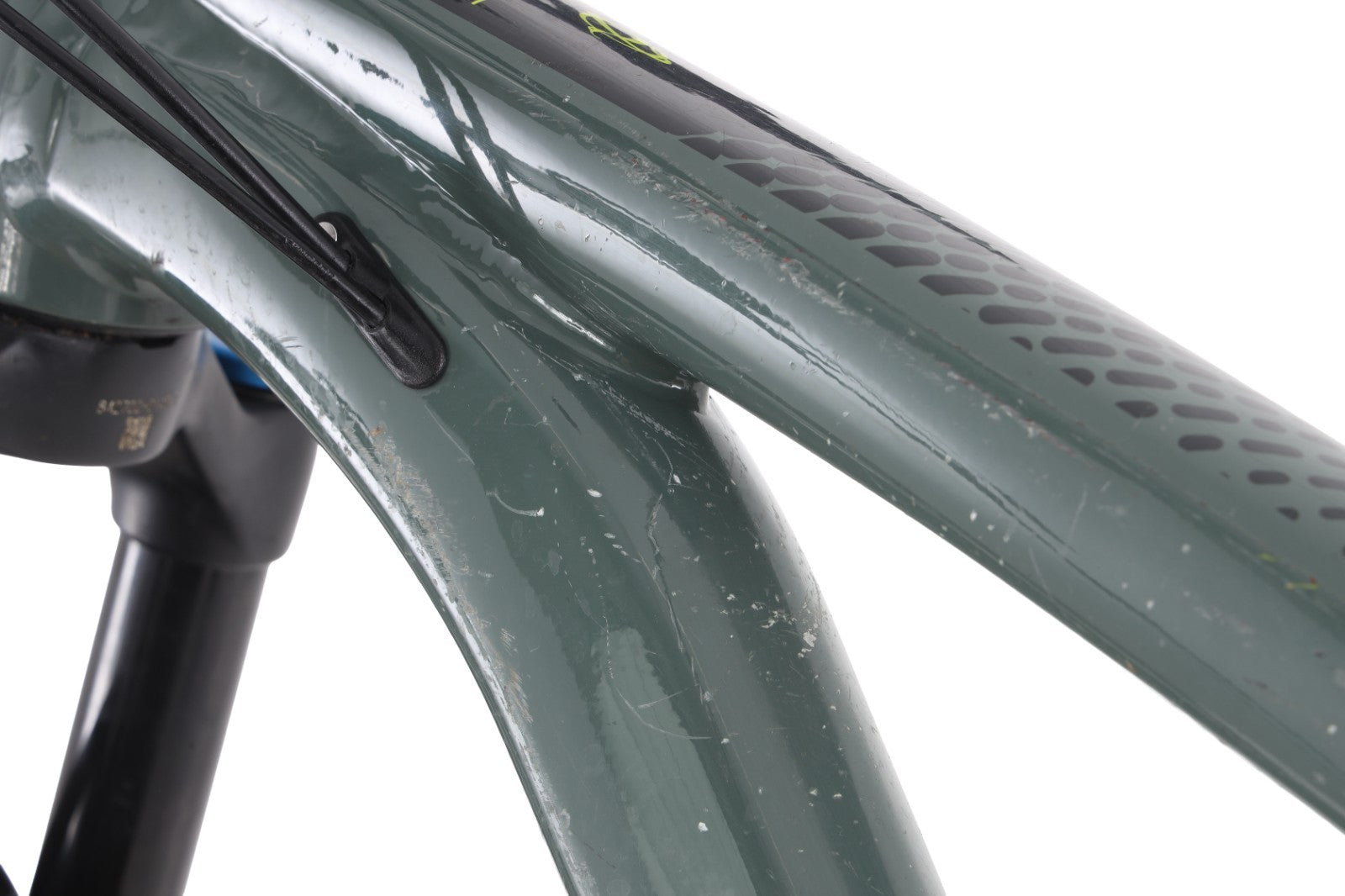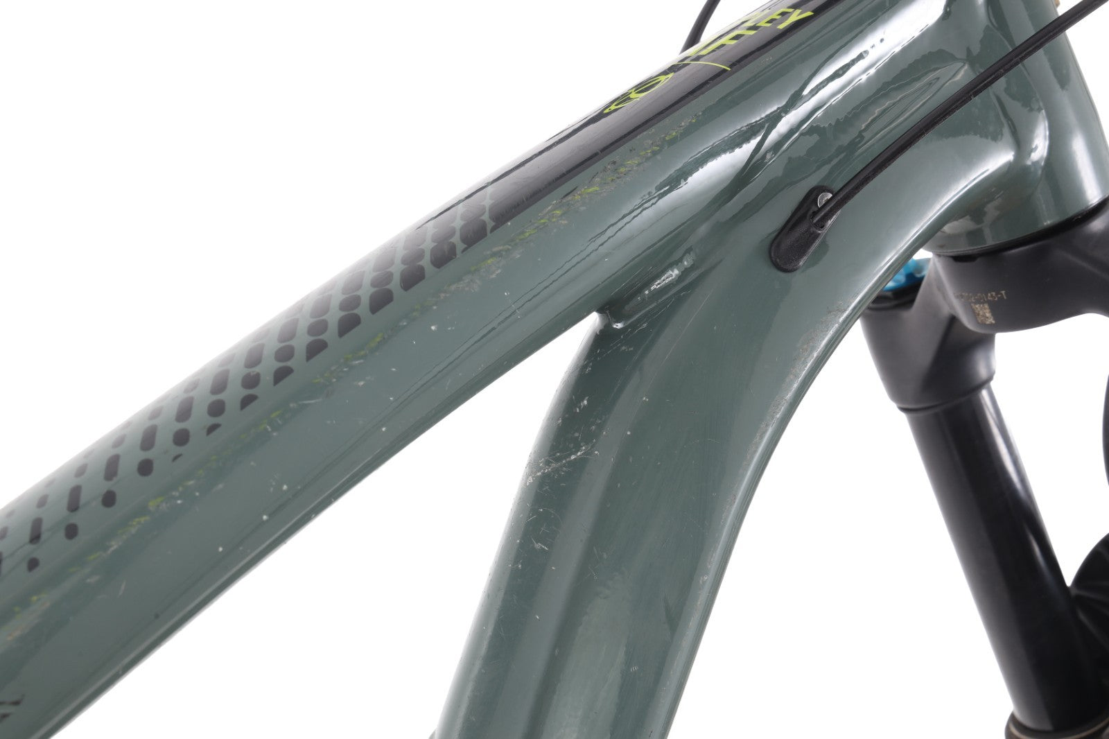 Condition: Used Shows normal signs of previous use, medium cosmetic marks/scratches to finish of frame & fork at various points including but not limited to down tube, top tube and seat tubes, normal wear to drivetrain and crank arms, marks/scratches to derailleur, stanchions in good condition with medium mark on right stanchion, wheelset lateral runout F: 0.25mm | R: 0.25mm, tires est. 60% tread life remaining, brake pads est. 40% life remaining || detailed mileage & service history not known.
