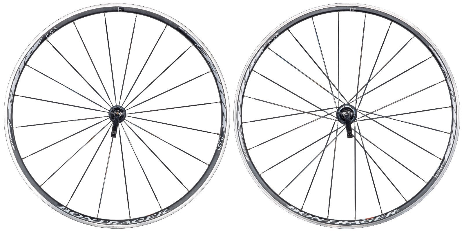 Condition: Used Shows normal signs of previous use, some marks/scuffs to spokes, rims, decals, & hubs, uniform wear on braking tracks, light biting to freehub body, bearings roll smoothly on hubs || detailed mileage & history not known. NOTE: Bontrager skewers included.